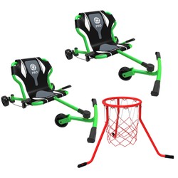 Z kompletnym zestawem EzyRoller Drifter Pro X doświadczysz podwójnej przyjemności z jazdy! Dwa popularne trójkołowce driftowe spotykają się tutaj z odpowiednim koszem do koszykówki – dla jeszcze większej ilości akcji, ruchu i zabawy na świeżym powietrzu.